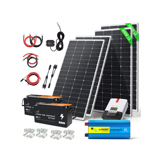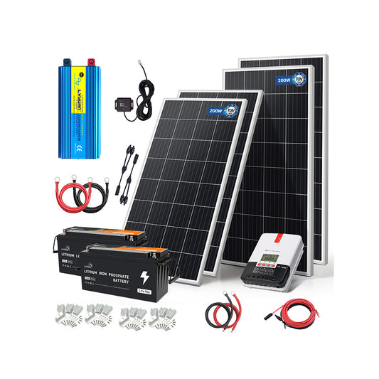 2000W Solar Power System Kit with 4x200W Panels, 2x100Ah Batteries & MPPT Controller